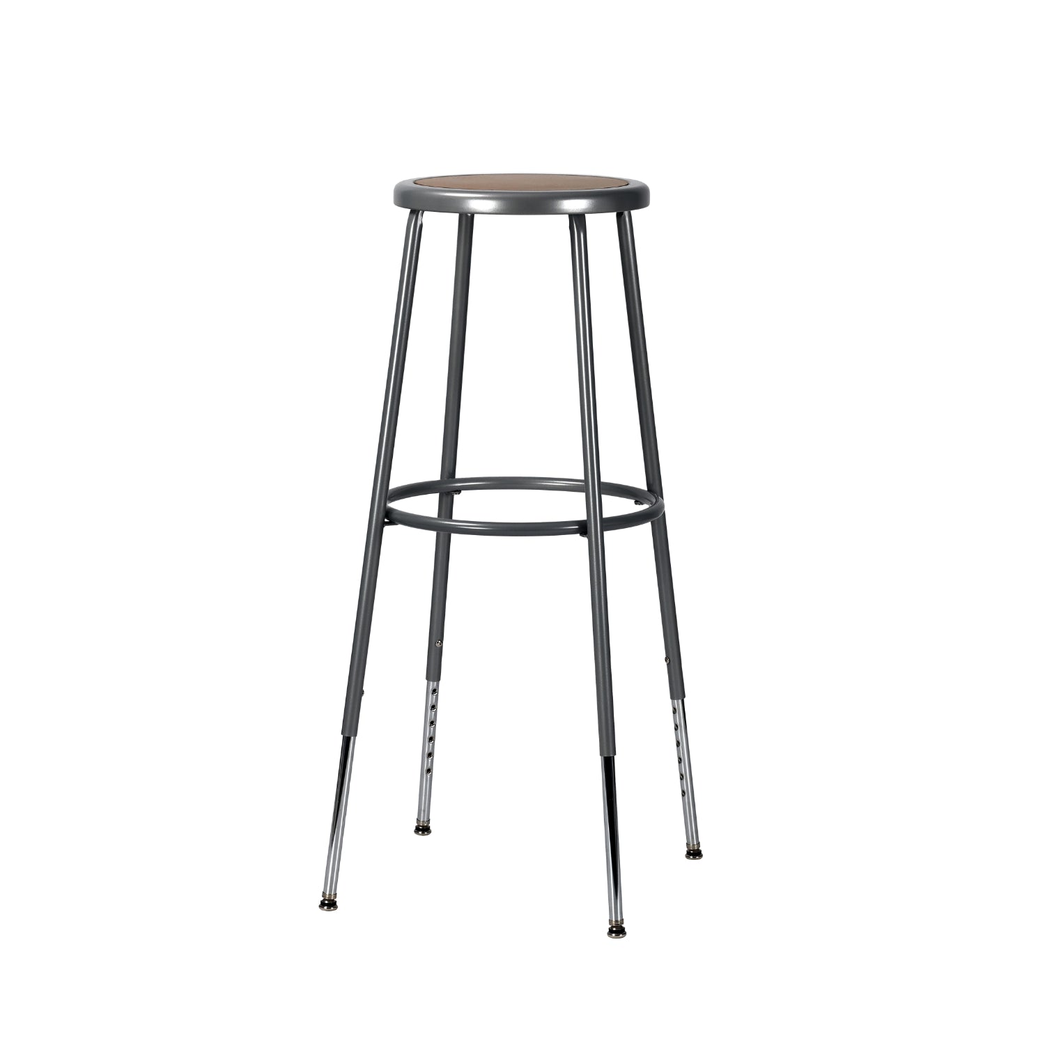 Crafted with industrial-grade steel tubing, it delivers long-lasting strength to stand up to daily use in high-traffic environments. The classic round Masonite seat provides a sturdy and practical seating surface that resists wear.
